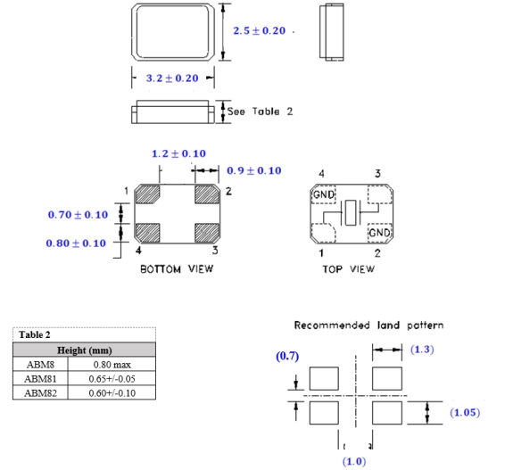 | ELM10-24.000MHz-16-R100-X-N15-T | AEL晶振 | ELM10 | MHz Crystal | 2.5mm | 2mm | 0.5mm |