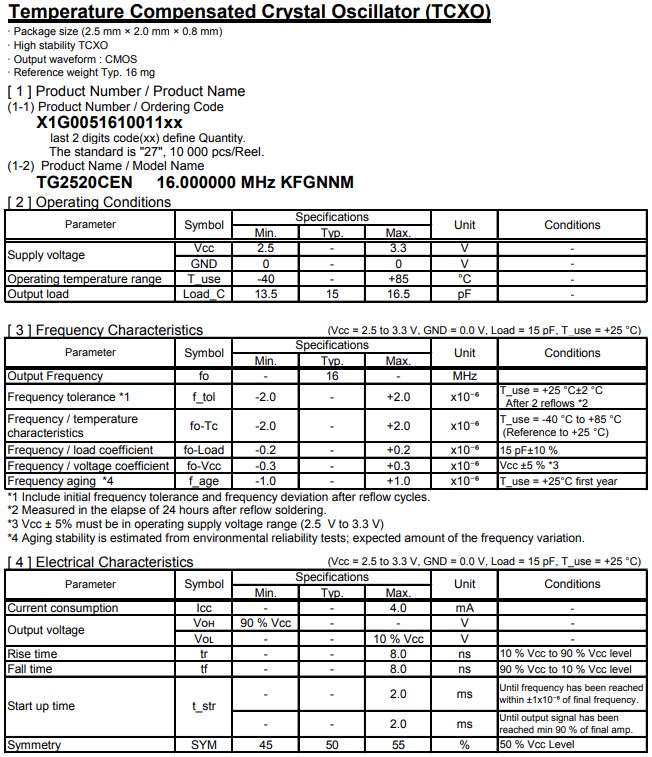 | X1G005101002900 | TG3225CEN | 16.000000MHz | 3.20x2.50x0.90mm | CMOS | 2.375 to 3.630 V |