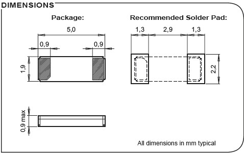 - 尺寸:5.0 x 1.9 x 0.9 mm