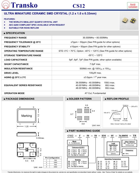 | SPECIFICATION-Transko晶振 | CS12晶振 |